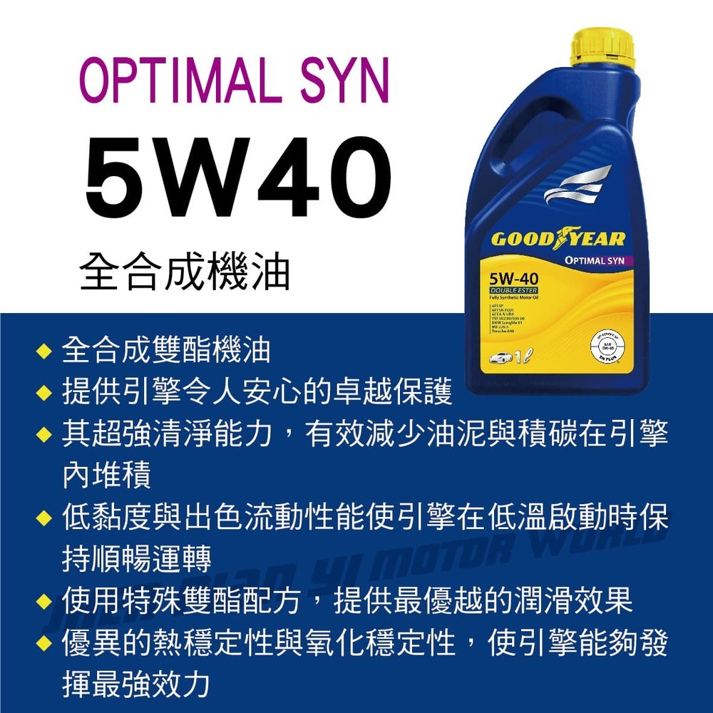 【愛車健檢保養套組】固特異 OPTIMAL SYN 5W40 合成機油1Lx4入(含工資)