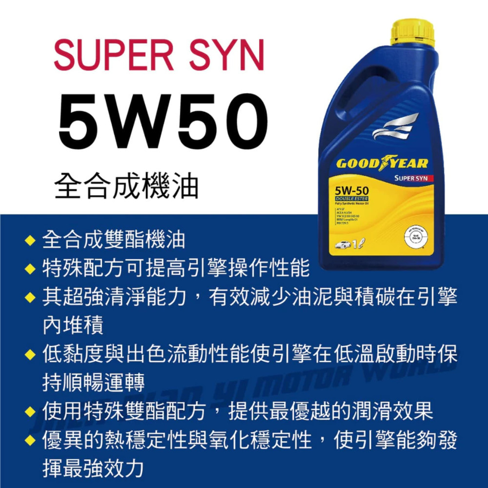 【愛車健檢保養套組】固特異SUPER SYN 5W50 合成機油1Lx4入(含工資)