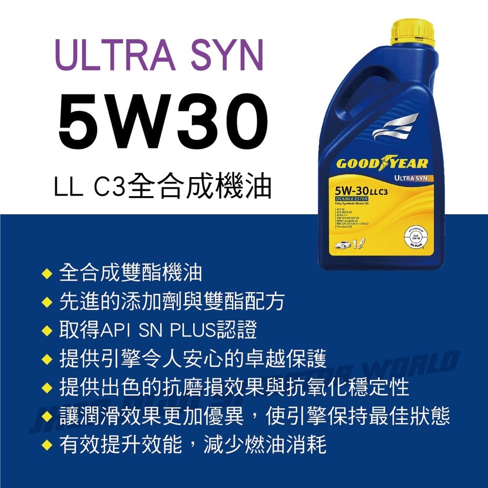 【愛車健檢保養套組】固特異 ULTRA SYN 5W30 LL C3 合成機油1Lx4入(含工資)