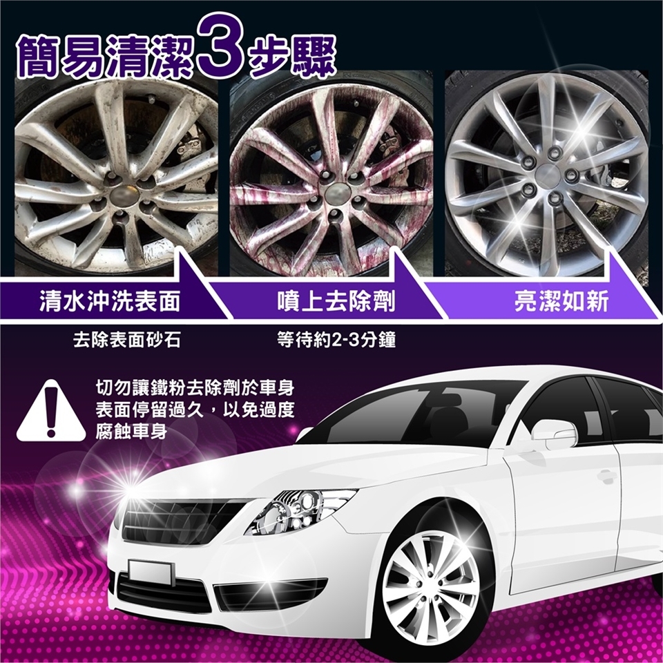 ● 施作簡易,可用於車身、鋁圈,並有效去除車身鐵粉、鐵鏽氧化物。