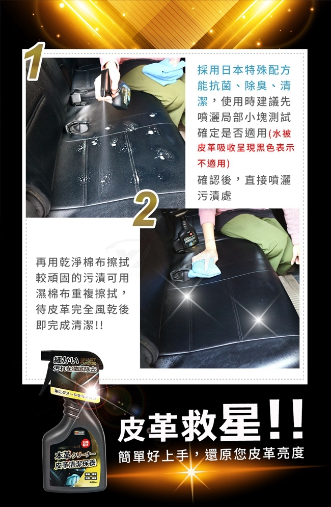 ● 適用合成皮革製品、車門飾板等,美化、清潔、保養