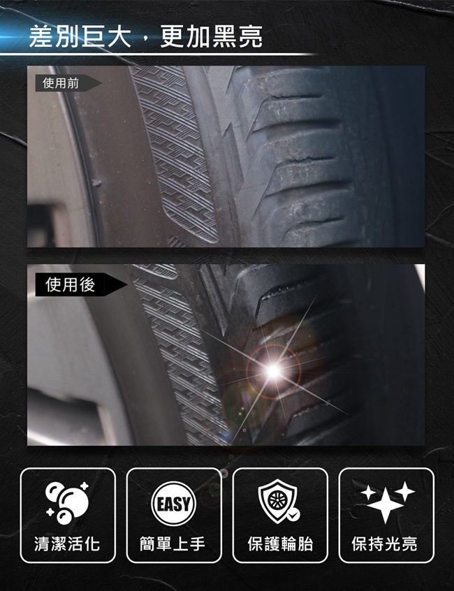 ● 使輪胎保持光亮如新,延長輪胎壽命