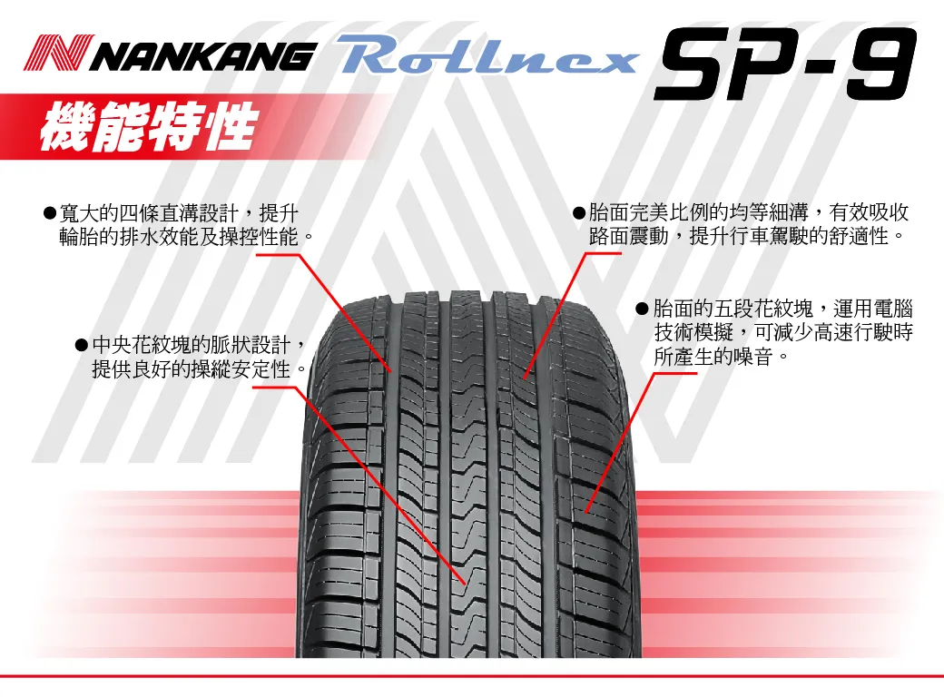 【NANKANG 南港輪胎】SP9操控舒適輪胎 225/65R17四入組(含安裝定位平衡)