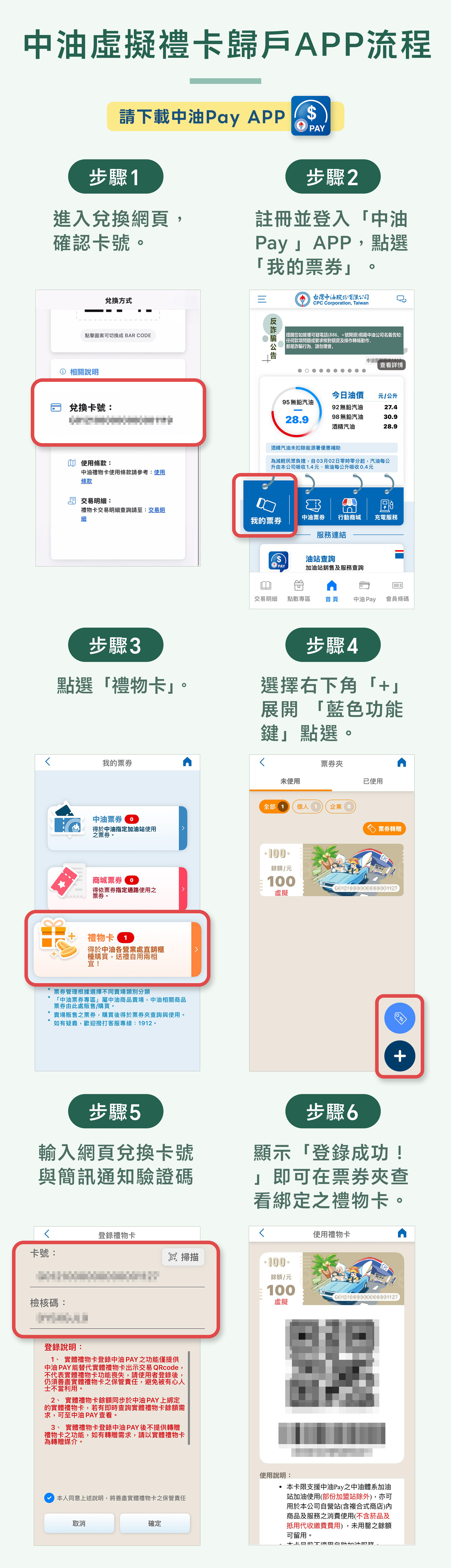 使用範圍:可於台灣中油股份有限公司 加油站體系(部分加盟站除外)加油使用,亦可於中油自營站(含複合式商店)消費使用(不含菸品及代收繳費項目)。