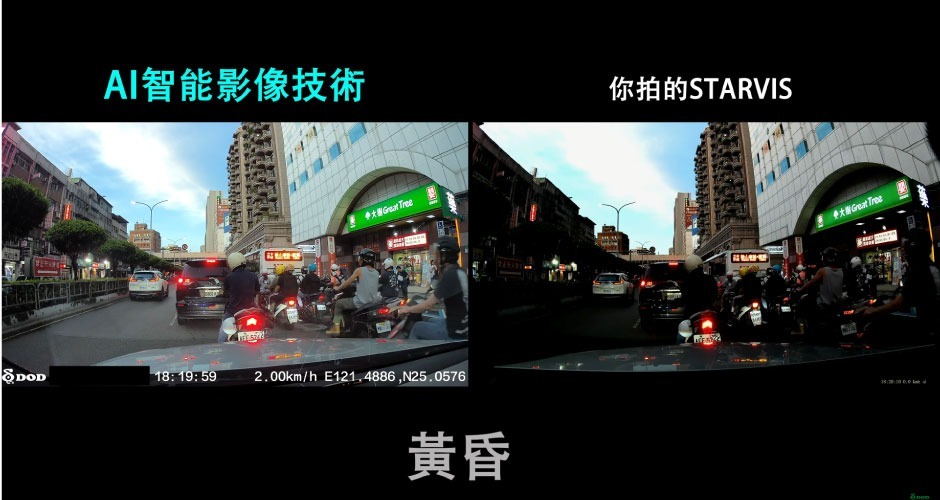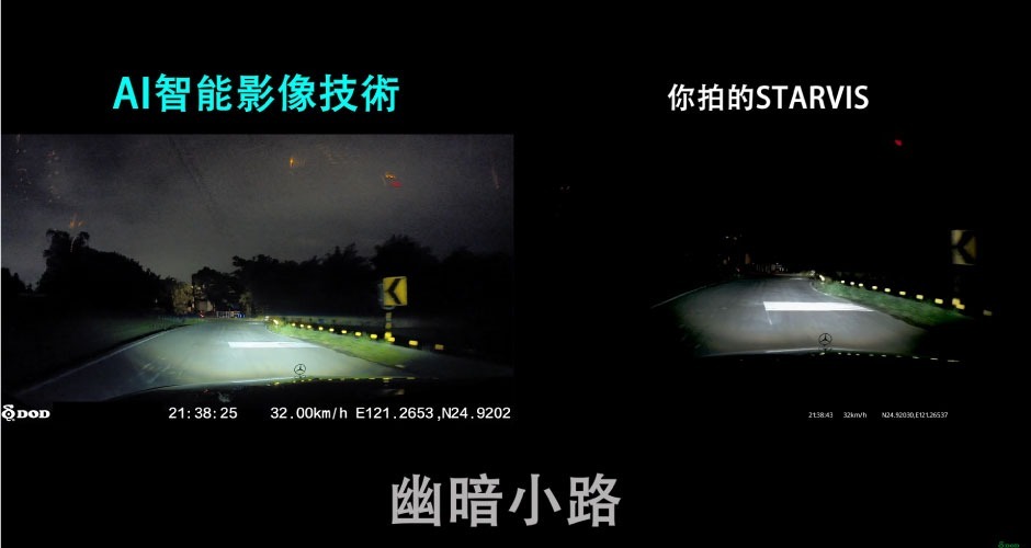 [全台獨家] DOD首先使用新一代AI智能影像技術,超明亮夜間無光動態攝影,透過AI影像運算,畫面細節可增強83%,黃昏、隧道、無路燈高速公路的低光源路段,即時適應不同環境,畫面依然明亮而真實。